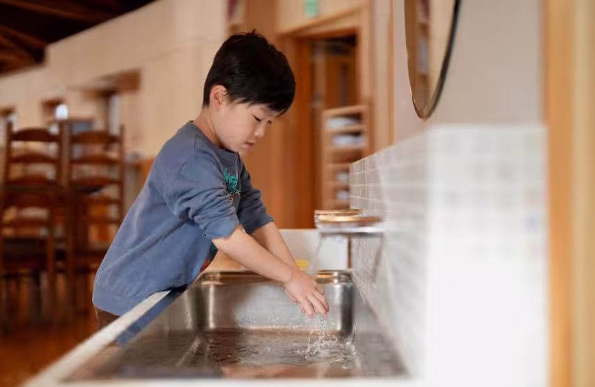 園での日常生活においても、手洗いやトイレなどの衛生面、道具やおもちゃの安全な扱い方など、日々の関わりの中で安全教育を実施。また、保護者IDカードによる送迎時の人物確認や、園バスの置き去り事故防止など防犯対策を行っています。