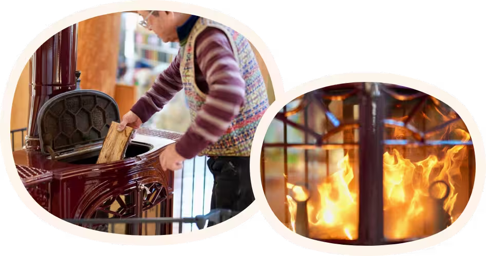 薪ストーブには、馬が山林から運び出す、環境に優しい「馬搬材」の薪を使用しています。